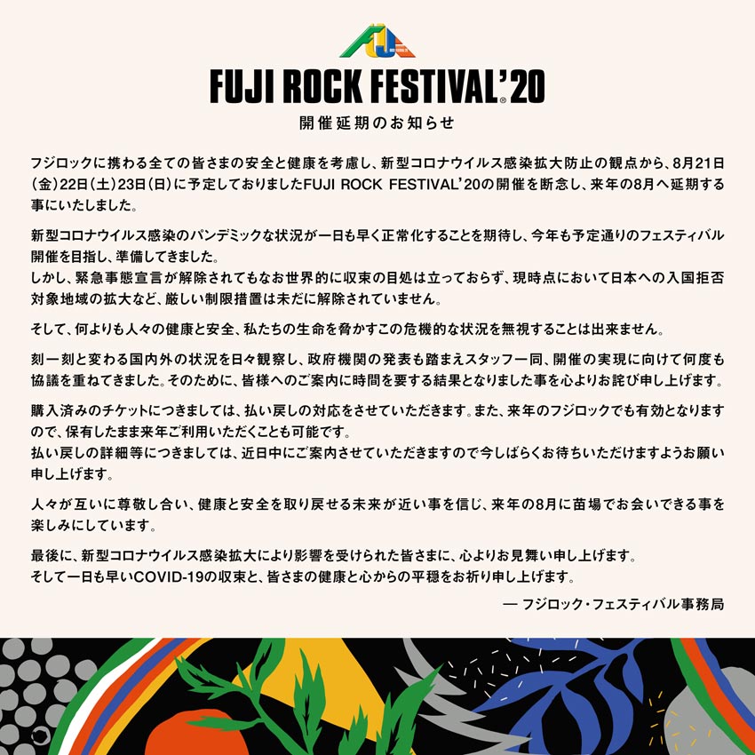 Source: frf-en.jp Jun 06, 2020 · 【fuji rock festival’21】2021年の日程は8月20日(金)〜22日(日)に決定、2020年のチケットがそのまま利用可能 2020.6.6